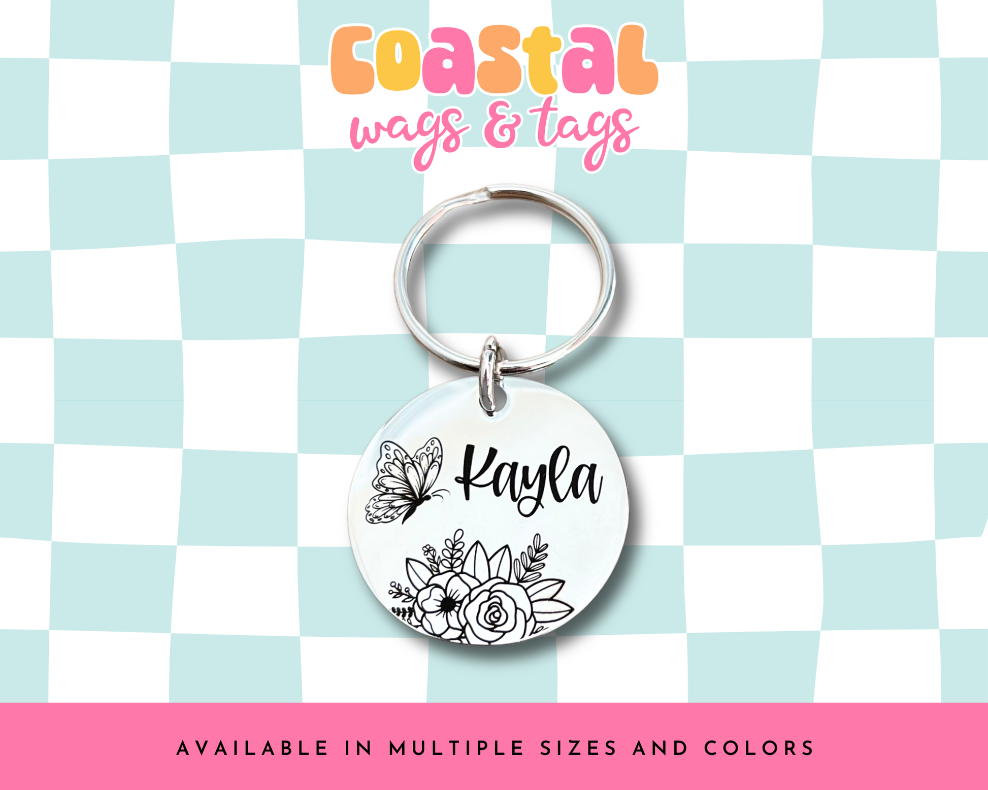 Personalize your very own Butterfly Flowers pet ID tag! Coastal Wags & Tags offers personalized stainless steel pet ID tags. We offer tags in multiple sizes, colors, shapes, & designs that can be personalized for your pet.